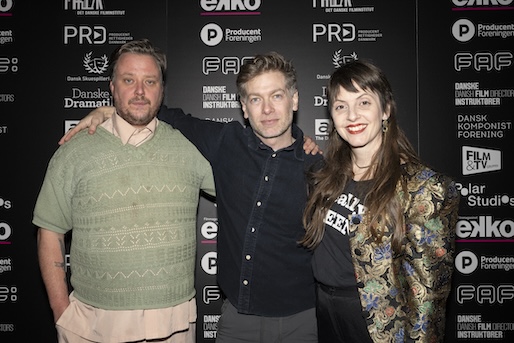 For andet år i træk var Thomas Elley (i midten) nomineret til prisen for bedste dokumentar, denne gang med Europa Endlos om den bulgarske lastbilchauffør Roman Penev. Til højre ses komponisten og lyddesigneren Nora Øland, der har arbejdet på flere af årets nominerede film.