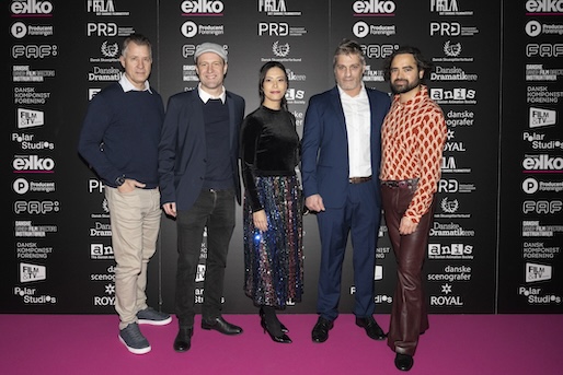 Den originale og vilde An Animal Being var nomineret til tre priser. Instruktør Mone Frogg (i midten), manuskriptforfatter Stine Likodelle (nummer to fra venstre) og producer Mikkel Smidt (nummer fire fra venstre) var nomineret for bedste fiktion. Atli Arnarsson (yderst til venstre) var nomineret for bedste lyddesign og Lukas Daugbjerg (yderst til højre) for fotografering.