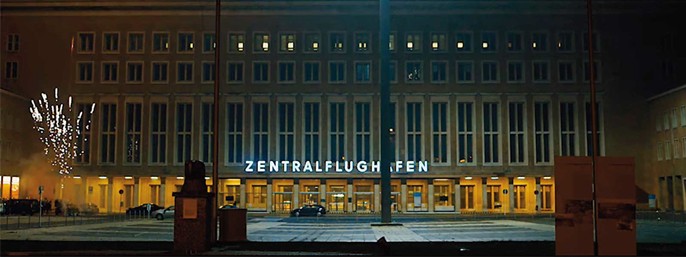 Vi befinder os i den massive lufthavn Berlin-Tempelhof, Berlins første centrale lufthavn, som blev opført i 1924. Under Adolf Hitler blev den til en af Det Tredje Riges kronjuveler.