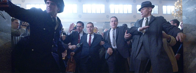 Men det, der står tilbage, er eksemplariske præstationer og fantastisk dialog – ikke mindst i en elegant scene, hvor ellers tavse Bufalino fortæller Sheeran, at Hoffa er blevet dødsmærket.