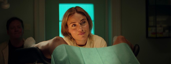 Skuespilleren forener Nannas personlige skræk og fertilitetslægens professionelt stabile hånd, når hun tager en håndfuld graviditetstests med sig på badeværelset for at være helt sikker.