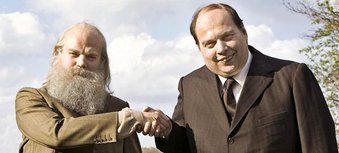 Nicolas Bro og Pilou Asbæk er gået undercover som rejsekonge og demagogisk advokat i filmen, som kan blive Christoffer Boes første publikumshit.