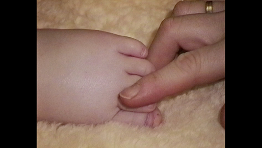 Mens de i nutiden leder efter indgangen til hospitalet, klippes der til Kristoffers lillebitte fod, som moren kærligt stryger med sin pegefinger. Så fjern, så nær.