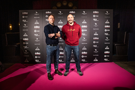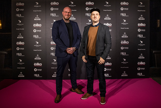 Skuespilleren Rasmus Hammerich (th.) medvirker i mange kortfilm på Ekko Shortlist, deriblandt flere af de nominerede ved årets prisfest. Han indtager den røde løber i cowboybukser sammen med en ven.