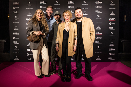 De fleste kender hende som skuespiller i film som Råzone og Dig og mig, men Julie R. Ølgaard deltager i festlighederne som instruktør med We’ll Always Have Paris. Med sig har instruktøren fra venstre sin fotograf Sophie Caroline Gohr, Marc Harpsøe, producer Joel Hyrland og klipper Yusuf Othman.