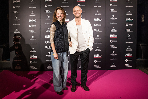 Filippa Suenson og hendes mand, skuespilleren Janus Elsig, sender store smil ud til kameraet. Suenson er nomineret for sin skuespilpræstation som psykisk udfordret mor i Uden at blinke.
