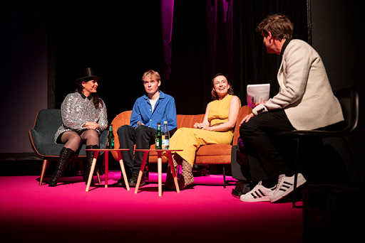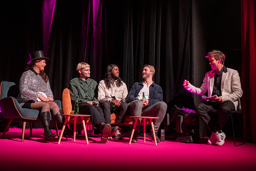 For at lære vinderne at kende blev de interviewet i en sofa. Her er det komponist Tobias Kropp, fotograf Kristian Arbs og art director på Cowboy Kevin, Jesper Hansen, der er samlet.