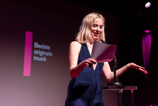 Emma Sehested Høeg er de seneste år blevet en megastjerne som både skuespiller, komiker og musiker. Hun havde nedskrevet en seriøs tale til ære for filmmusikken, men leverede den med sin charme og sit nærvær til stor jubel.