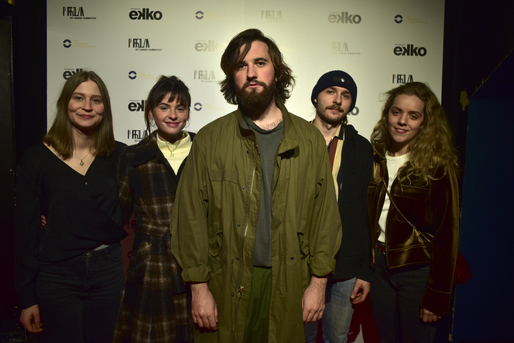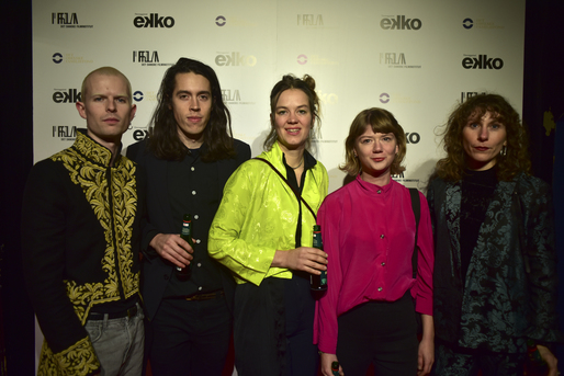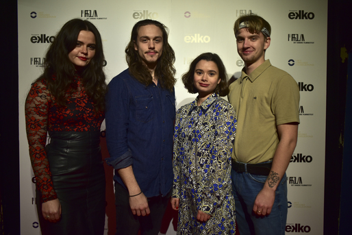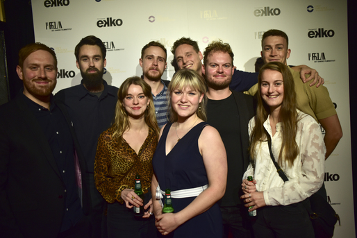 Ingen siger farvel, men alle forsvinder sikrede Jonas Risvig (midt) Publikum Prisen, og han havde blandt andre taget sin kvindelige hovedrolleindehaver, Marie Boda (nummer to fra venstre), med på den røde løber.