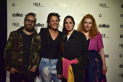 Roser er gule var yderligere repræsenteret af instruktør Aviaja Skotte (tv.) og skuespillerne Micki Stoltt, Josefine Glæsel og Simon Rod.