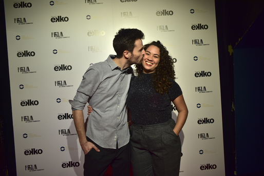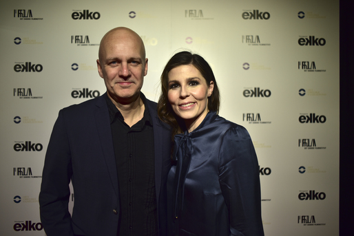 Værtsparret Julie Rudbæk og Jesper Zuschlag var klædt på til fest, da de kom til Bremen Teater for at styre løjerne ved Ekko Shortlist Awards.