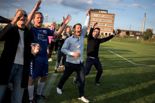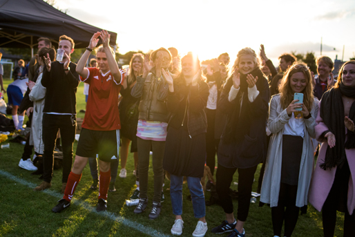 Der er stærk opbakning på sidelinjen, da Meta Film og Miso Film tørner sammen i finalen under den sene aftensol til Ekko Film Cup 2016.
