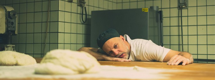 Vi ser Erik i hjemmet og i bageriet. Ubønhørligt bevæger vi os frem mod hans totale sammenbrud. Det er filmens store scene, hvor Troels Lyby ifører sig en ansigtsmaske af dej og sætter sig ind til middagsbordet. En malplaceret, grotesk happening, tror konen og børnene, indtil de hører Eriks gråd inde bag masken.