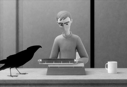I den animerede Mellem væggene har forfatter-hovedpersonen skriveblokering, der viser sig visuelt som de omsluttende grå vægge og et par krager, som kun datteren Mille kan se.