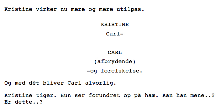 Et farverigt sprog kan for mig at se være til nytte i arbejdet med skuespillere. Blandt andet kan det bruges til at markere særligt vigtige undertekster – som i eksemplet her.