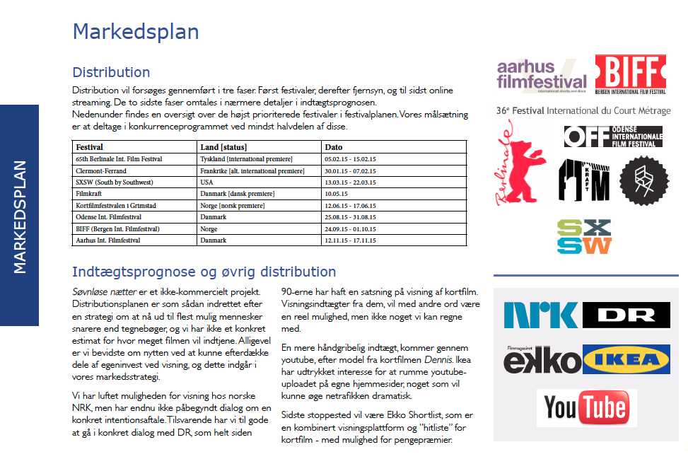 Sandheden er, at de fleste kortfilm, Søvnløse nætter inkluderet, aldrig kommer til at gå i hverken plus eller nul. De vil ikke blive en god forretning. Det er noget, man bliver nødt til at retfærdiggøre i en ansøgning.