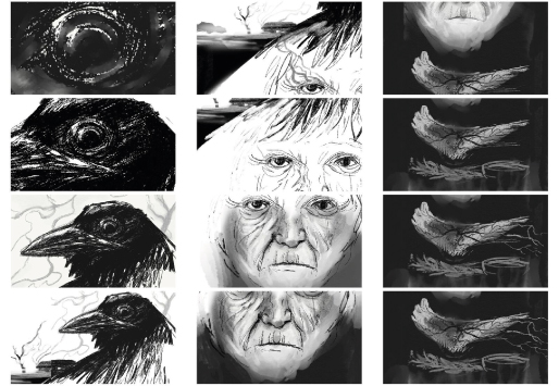 Instruktøren er især glad for filmens overgange mellem billederne. En snestorm bliver til øjet på en sort ravn, og blodårene i en fod glider over i at være rødder i jorden.