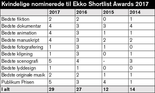 2016 bød på en fordobling i antallet af kvindelige nominerede ved Ekko Shortlist Awards.