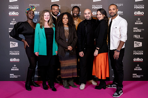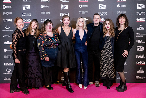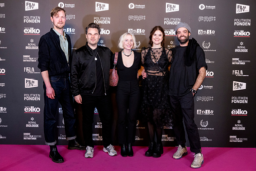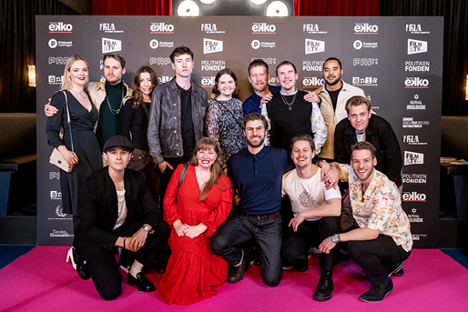 Skifting var nomineret til hele syv priser, så en stor del af filmholdet var mødt op til Ekko Shortlist Awards. Her er det i midten instruktør Zinnini Elkington (nummer fire fra venstre) og til højre for hende hovedrolleindehaver Emma Sehested Høeg.