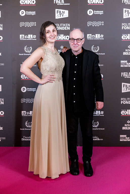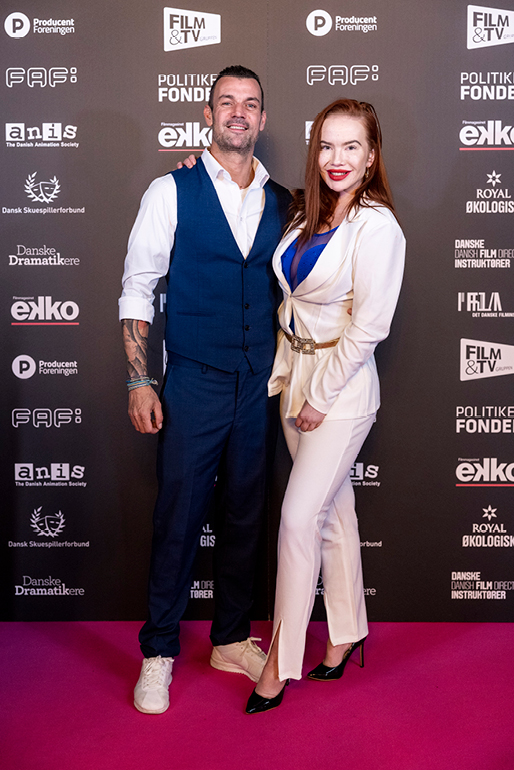 Skuespillerne Jon Braager og Rikke Tiana havde øjensynligt farvekoordineret deres outfit i hvidt og blåt, så de glasklart repræsenterede deres nominerede kortfilm Urørlig.