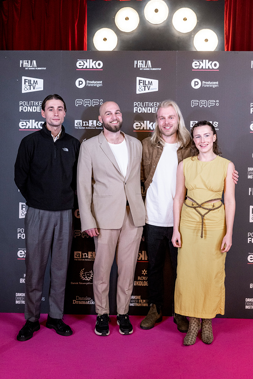 Super16-afgangsfilmen Young var i spil til fire priser, så filmen var godt repræsenteret i form af fra venstre tonemester Christian Munk Scheuer, komponist Jesper Ankarfeldt, instruktør Kristian Håskjold og caster Astrid Faarup.