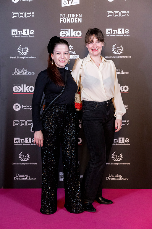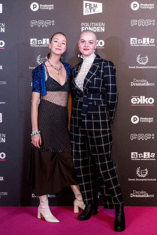 Emilia Sølvsten (tv.) og Johanne Merethe Filipsen stod knivskarpt på den røde løber. De to kvinder var da også nomineret for deres billedskønne scenografi i Historien om en søn.