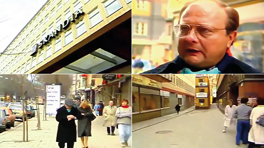 Da politiet ikke orkede at have Skandiamanden med i deres rekonstruktion af mordet, tog han selv kontakt til SVT og fik lavet en grotesk video om sin færden før og efter drabet (foto: SVT).