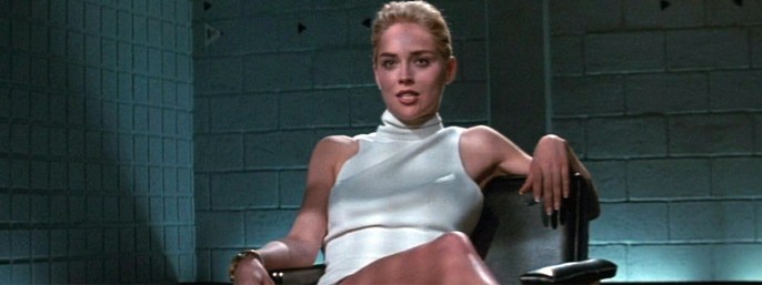 I Iskoldt begær – Basic Instinct – spreder Sharon Stone i rollen som issyl-seriemorderen Catherine Tramell benene under et krydsforhør med politiet, så man kan se, at hun ikke har nogen trusser på (se scenen under artiklen).