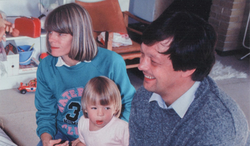Signe sidder på børneværelset i et lykkeligt øjeblik med sin far og moren, der pludselig gik bort, da Signe var fem år gammel.