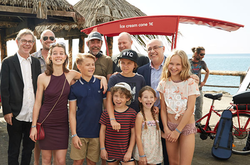 Producent Henrik Møller-Sørensen (yderst tv.) og udvalgte fra filmholdet kunne nyde det gode vejr på Gran Canaria under optagelserne af Far til fire i solen, mens andre på holdet beretter om stress (foto: Lorena Morin).