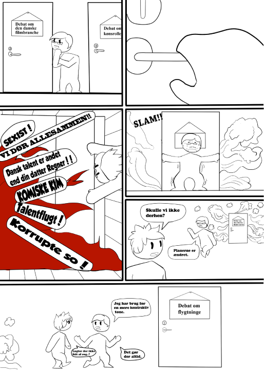 Det får manden til at smække døren i igen og i stedet søge mod en flygtningedebat, hvor tonen ifølge ham er mere konstruktiv. Meget mere umiskendelig kan kommentaren på filmbranchens debatkultur vel næppe være.