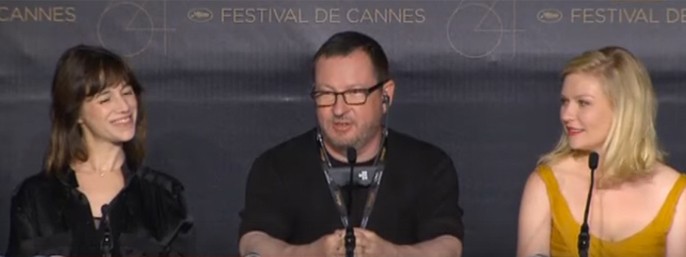 Det er ellevte gang, at Lars von Trier deltager på Cannes-festivalen. Han debuterede i 1984 med Forbrydelsens element og vandt Guldpalmen med Dancer in the Dark i 2000.
