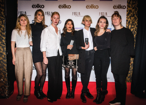 Sorte måne-holdet fik to priser med fra scenen, da fotograf Catherine Pattinama Coleman (i midten med blomstret nederdel) vandt for bedste fotografering, og filmen vandt en af aftenens største priser, nemlig bedste fiktion.