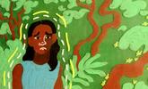 Omgivet af rødderne fra et visnende træ forlader en gammel kvindes sjæl sin tidligere krop.
