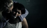 En ung kvinde er bagbundet, mens en anden kvinde hvisker hende i øret.