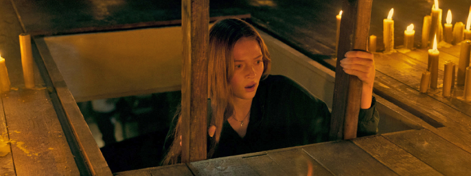 I bedste Scary Stories to Tell in the Dark-stil må man pænt sidde og vente på, at den antologi-inspirerede fortælling skrider frem, og et forudbestemt monster banker på. Det udløser, at én fra gruppen genkalder, hvordan man undgår væsenet, mens resten panisk tager benene på nakken.