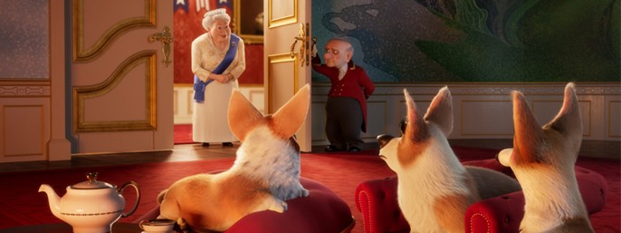 Dronningens corgi ligner en nuttet animationsfilm fyldt med hunde og let satire på den engelske kongefamilies bekostning.
