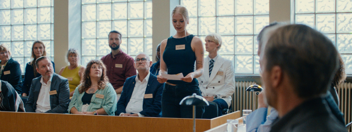 Vi hører parterne, og deres vidnesbyrd forskyder gradvist vores opfattelse. Det er ikke en autoritet, der dikterer sandheden, men den fælles fortælling, der langsomt tager form. Dommen vokser frem.