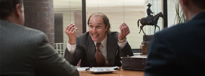 Faktisk er rollen meget lig McConaugheys rolle som Mark Hanna i The Wolf of Wall Street, den driftige forretningsmand uden moralske skrupler, manden der blev mere høj af aktiespillet end af selve pengene.
