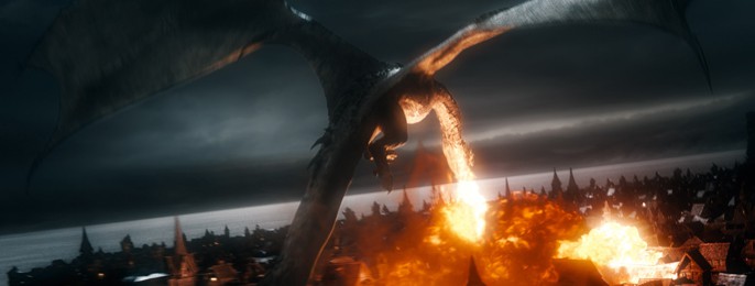 Der er mange effekter – fra fabelagtige miniaturer og lige så imponerende dekorationer til frådende CGI-monstre, inklusive dragen og motion capture-vidunderet Smaug. Og Jackson gør dem alle nærværende ved at lade sit kamera bevæge sig reportage-agtigt nede på jorden, inde mellem masserne og de væltende bygninger.