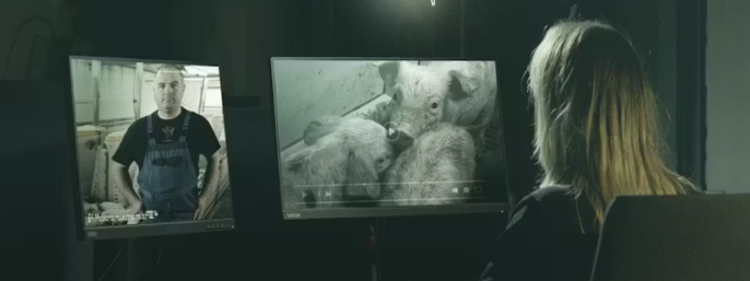 Siden ser man fastklemte grise, der sidder fast samme sted i op mod otte timer. Man ser trange forhold. Man ser gispende, døende smågrise. Og døde grise. Ikke én, to, tre, fire, fem, seks, men hele syv døde pattegrise i én svinesti. Og måden, som medarbejderen, der passer dyrene bare stritter dem til side på, gør, at man aner forråelsen i branchen.