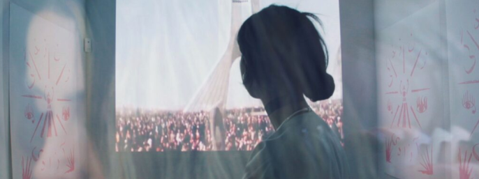 Videooptagelser lægges i lag og tekster i forskellige fonte forstærker collagementaliteten, ensartede YouTube-klip og telegrambeskeder skyller igennem.