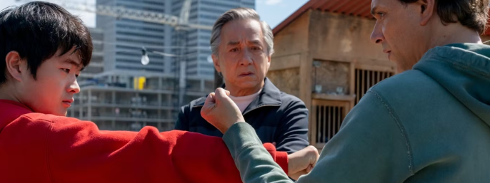 Jackie Chan er altid festlig, og at se ham sparre med Ralph Macchio – Mr. Han versus Daniel LaRusso – er et knæfald værd. Mr. Miyagi optræder i flashbacks, stadig spillet af Pat Morita, der døde i 2005.