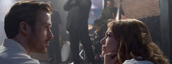 Andetsteds i motorvejskøen møder en dagdrømmende jazz-fan, Sebastian (Ryan Gosling), næsten en håbefuld skuespilleraspirant og servitrice, Mia (Emma Stone). Deres veje krydses igen og igen, indtil de giver efter for skæbnen, denne gådefulde, amorbue-bevæbnede kismet, som altid har været musicalgudernes måde at føre uforenelige elskende sammen på.