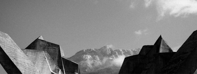 Billedsiden fortsætter hele vejen igennem med at udforske det monokrome, sterile landskab fra åbningsbilledet (angiveligt optaget omkring kommunistiske monumenter i Balkans bjerge, opført på bestilling af Jugoslaviens præsident, Tito).