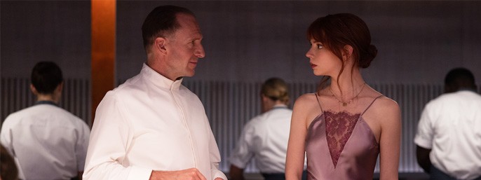Ralph Fiennes er i sit suveræne es som den sataniske mesterkok, der regerer på samme strikte vis som dengang, han var sadistisk lejrkommandant i Schindlers liste. Faktisk ligner han i hvid kittel og maoflip Dr. No i den første James Bond-film.