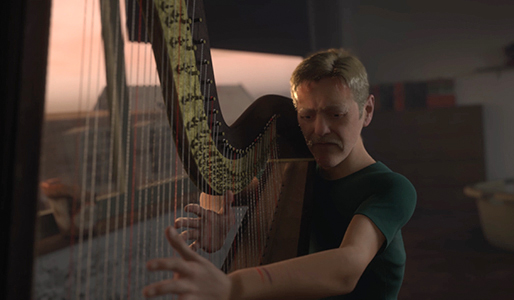 Thure Lindhardt spiller hovedrollen som den hidsige harpespiller David, og hans animerede ”jeg” ligner skuespilleren til forveksling. Han afskærer sig fra omverdenen, helliger sin tid til musikken og irriteres af sine medmennesker på Zoom, mens bomber sprænger udenfor.