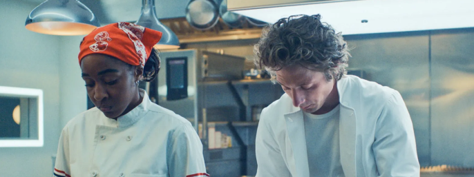 Med et lydspor, som alene består af Nine Inchs Nails’ sarte industrial rock-nummer Together, følger vi, i en slags endeløs bunke af scenebrokker, hovedpersonen Carmen Berzattos tilblivelseshistorie som levnedsmiddelhåndværker og gastronomisk kunstner.