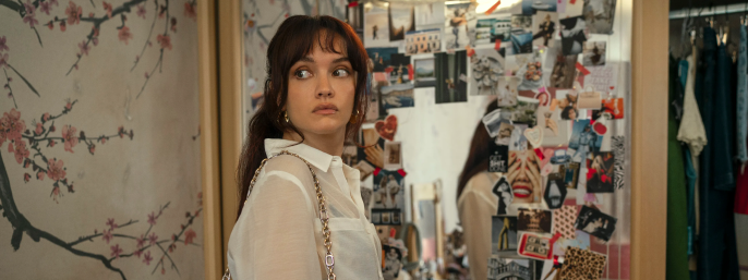 Cherry (Olivia Cooke fra House of Dragon) træder med hår, læbestift og kjole i en nuance et kirsebær direkte ind i det beige univers som en forstyrrende kraft. Hvor Laura er elegance, penge og kontrol, er Cherry impuls, underklasse og seksualitet.