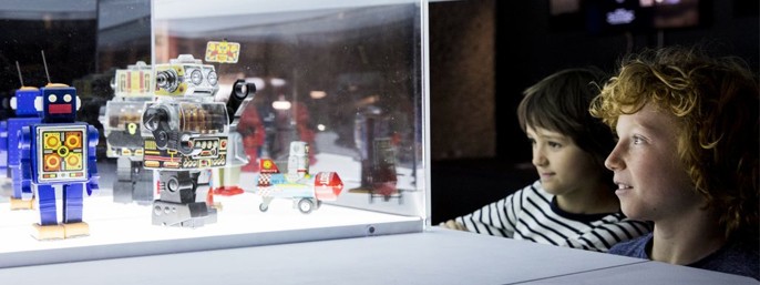 Udstillingen rummer over 200 pulpbøger og filmmanuskripter, læssevis af rumfigurer, øjenåbnere som sovjetiske og amerikanske jobannoncer for luftfart, byttekort med Marsmænd, rekvisitter fra Star Wars og Alien-serien, interaktive installationer, rumdragter, legetøjsrobotter, filmklip fra over 50 sci-fi-film og meget mere.